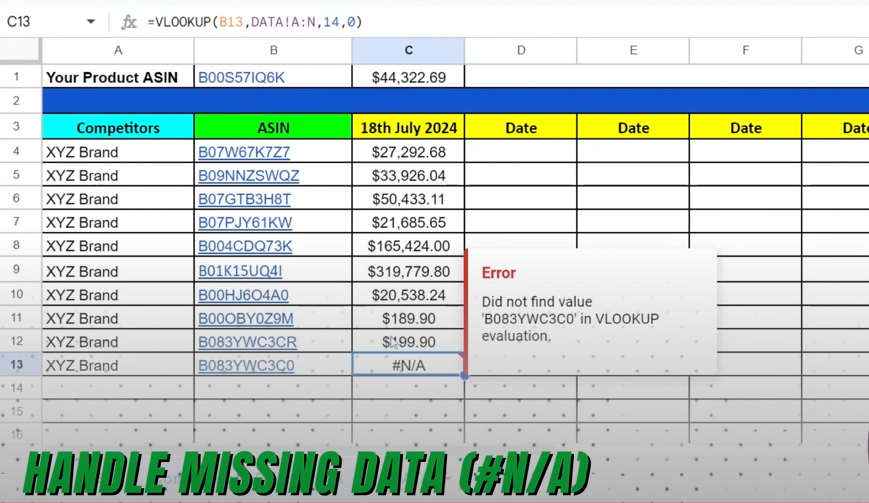If "NA" continues to appear, manually check the listing to see if the product is out of stock or unavailable.