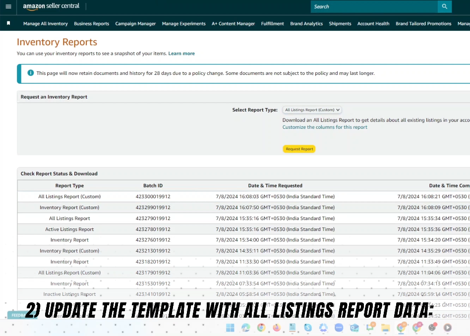 Step 1: Download the All Listings Report from Amazon Seller Central
