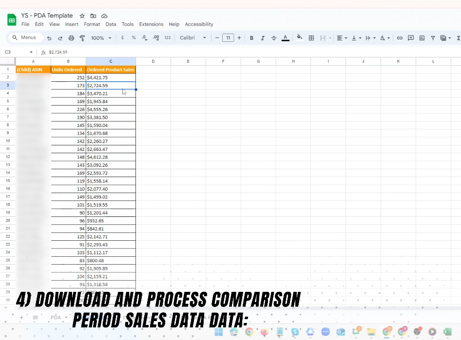 Copy Child ASIN, Units Ordered, and Ordered Product Sales.