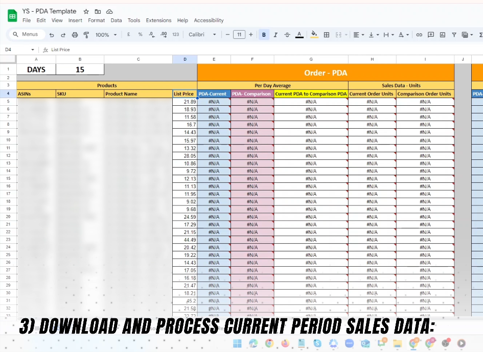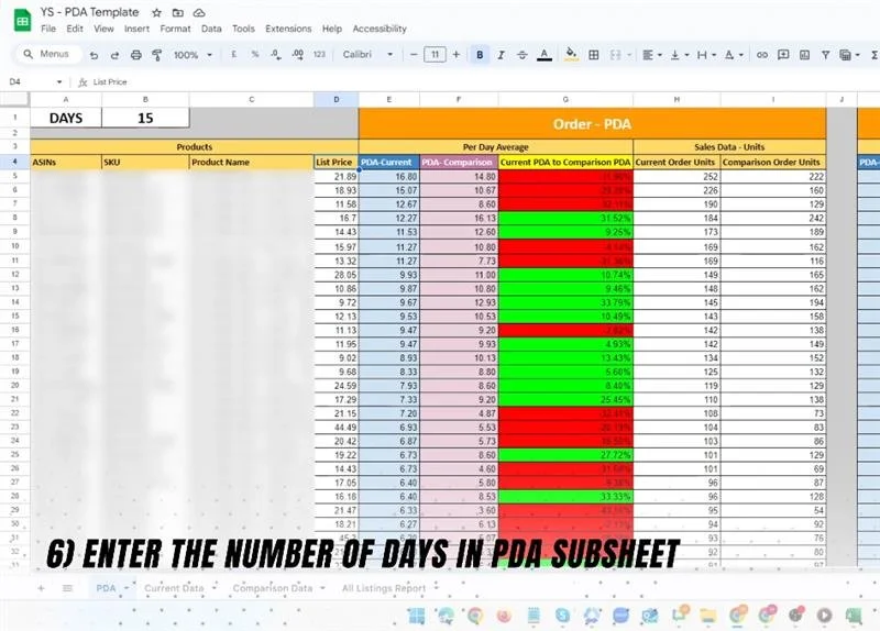 The PDA sheet will automatically fetch and display SKU-level insights using built-in formulas.